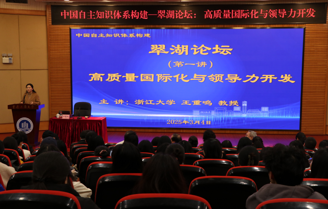 3月4日,“翠湖论坛”第一讲在南岸校区博智楼7200会议室开讲。浙江大学文科资深教授、浙江省特级专家、浙江大学全球创业研究中心主任王重鸣教授应邀来万象城官网作了题为“高质量国际化与领导力开发”的专题讲座。来自工商管理学院、会计学院的200多名师生参加讲座,讲座由学校党委常委、副校长任毅教授主持。