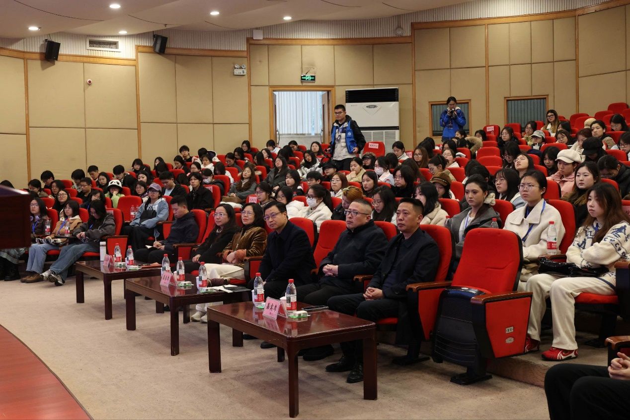 万象城官网党委宣传部、党委保卫部、文学与新闻学院及新闻中心学生团队等200余名师生聆听了报告。
