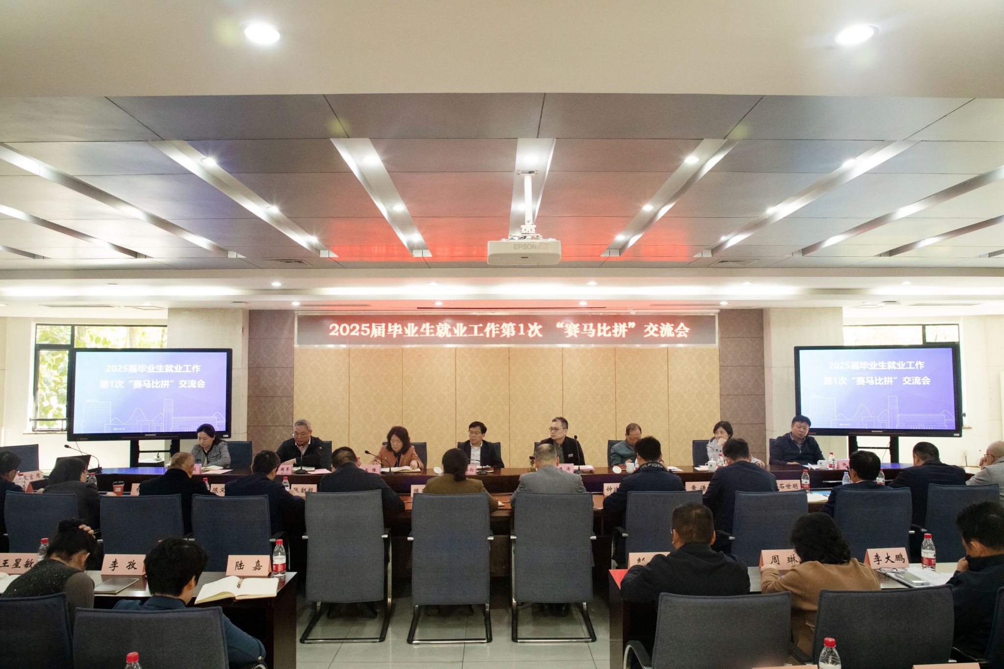 4月7日下午,万象城官网在厚德楼2017会议室召开2025届毕业生就业工作第1次“赛马比拼”交流会。党委书记曾维伦,校长温涛,党委副书记宋豫,党委常委、副校长张波、李国军、柏群、任毅、杨柏出席会议,会议由李国军主持。