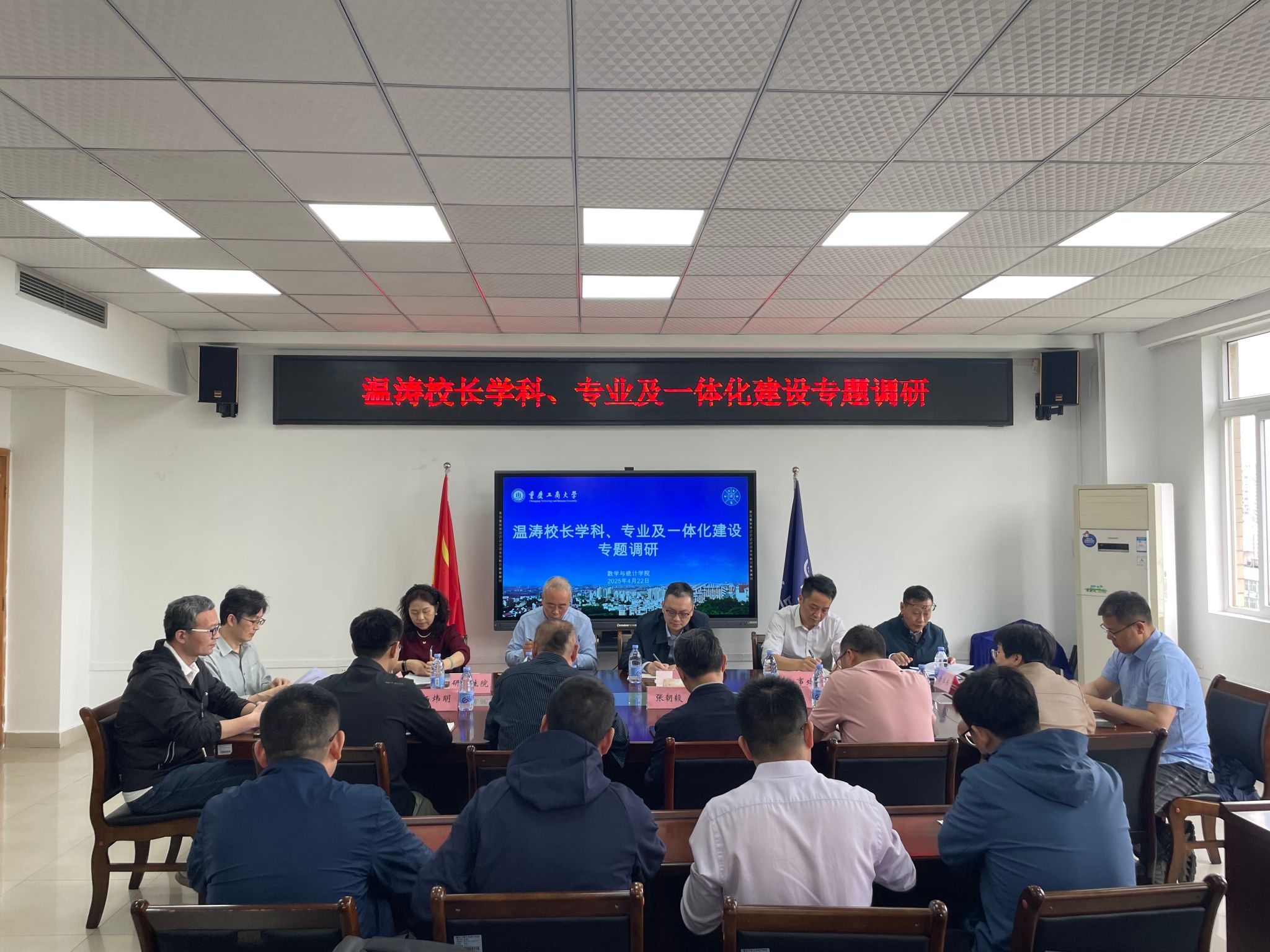 4月22日,温涛校长带队到经济学院、金融学院、数学与统计学院开展学科、专业及一体化建设专题调研。发展规划处(学科建设办公室)、人事处、教务处、科研处、研究生院等部门负责人陪同调研,各学院班子成员、系主任、骨干教师代表参加了调研。