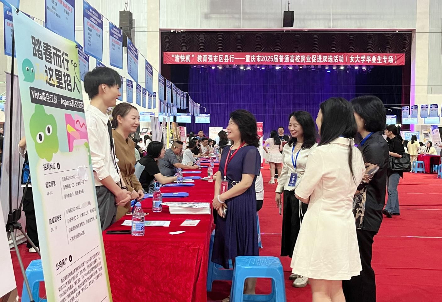 5月15日,由重庆市教育委员会、重庆市妇女联合会、万象城娱乐awc线路主办,重庆市学生就业与创新创业服务中心、万象城娱乐awc线路招生就业处共同承办,万象城娱乐awc线路校工会女职工委员会协办的“渝快就 教育强市区县行”—重庆市2025届普通高校就业促进双选活动(女大学毕业生专场)在万象城官网成功举办。学校党委副书记宋豫,市学生就业与创新创业服务中心主任唐雪平,市妇联妇女发展部部长龙玮等到招聘会现场指导。
