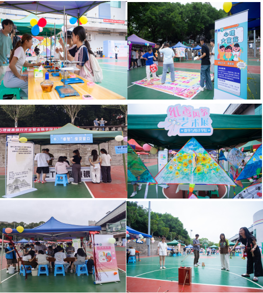 嘉年华活动现场设情绪管理区、团队协作区、自我探索区、创意表达区、成果展示区五大主题区域,涵盖“情绪集市”“情绪面具”“心理大富翁”“CTBU 心理健康银行”“心理‘食’验室”等32类学生创意主题,借助丰富多彩的活动,培育大学生健康的心理素质。