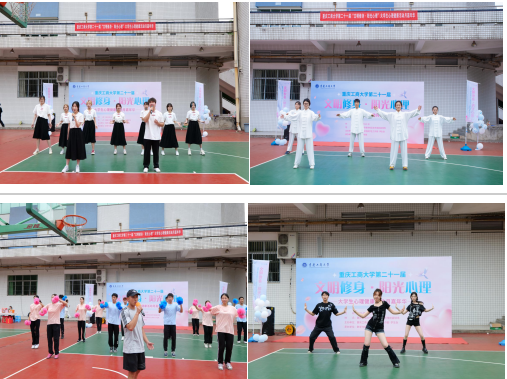 嘉年华活动节目展演环节紧扣“文明修身、阳光心理”的主题,现场学生们带来心理健康操、合唱、爵士舞和现代舞,展示了大学生积极阳光的青春风采。
