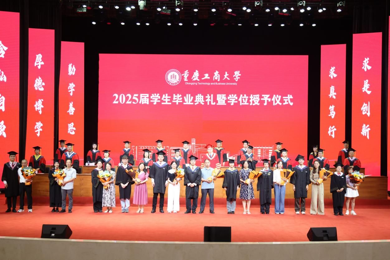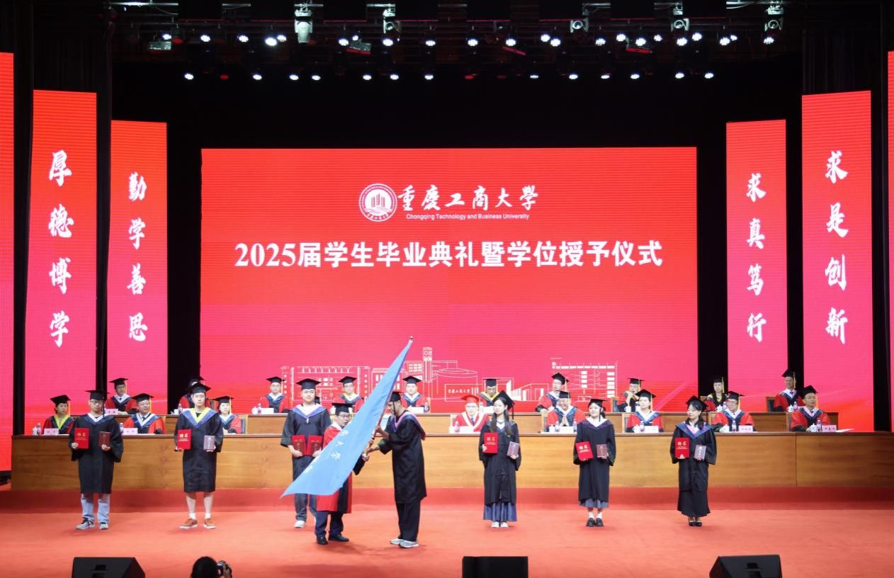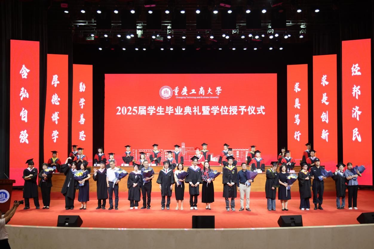 青衿暂别,玉宇长歌。6月19日上午,学校在南岸校区剧场举行2025届学生毕业典礼暨学位授予仪式。 2025届共有6015名本科生、1416名硕士研究生、21名博士研究生和14名留学生顺利获得了学位,开启人生崭新篇章。校长温涛以“在不确定的世界,做确定的自己”为题为毕业生们上在重工商大的“最后一课”。