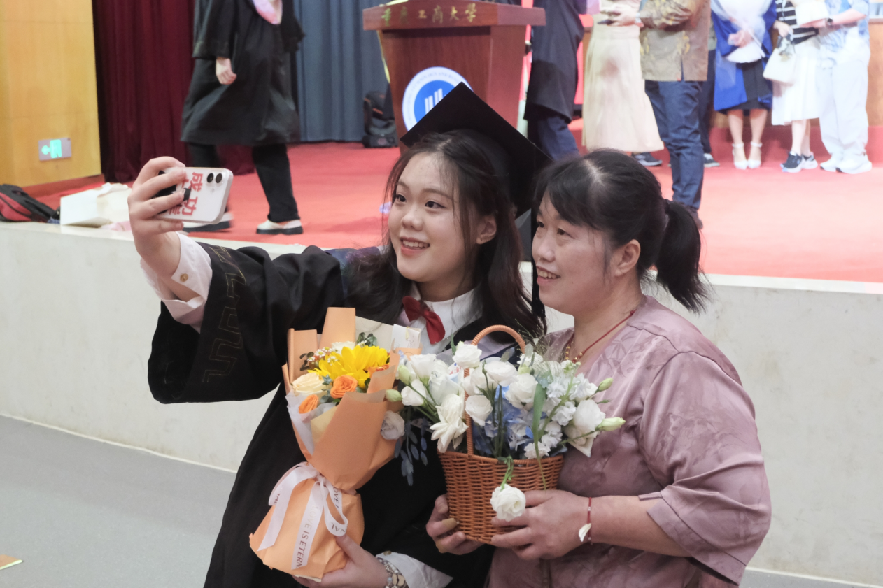 回望圆梦重工商大的时光,校园里每一个身影都化作记忆里温暖的印记。临别之际,辅导员轻轻拍着毕业生肩膀,“无论未来遇到什么,记得常和老师说说心里话,母校永远是你们的后盾。”食堂师傅将打包好的特色小食塞到学生手中,“以后吃不到学校的饭菜,可别饿着自己,得按时吃饭。”毕业生代表向敬爱的教师献花,芬芳的花束承载着深切的谢意,献给为育人使命,倾付热忱的全体教职员工,致敬每一位用爱与坚守,托举起青春梦想的引路人。