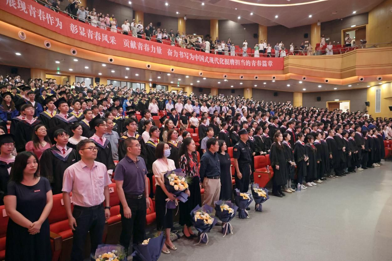 在庄严的国歌声中,毕业典礼正式开始。