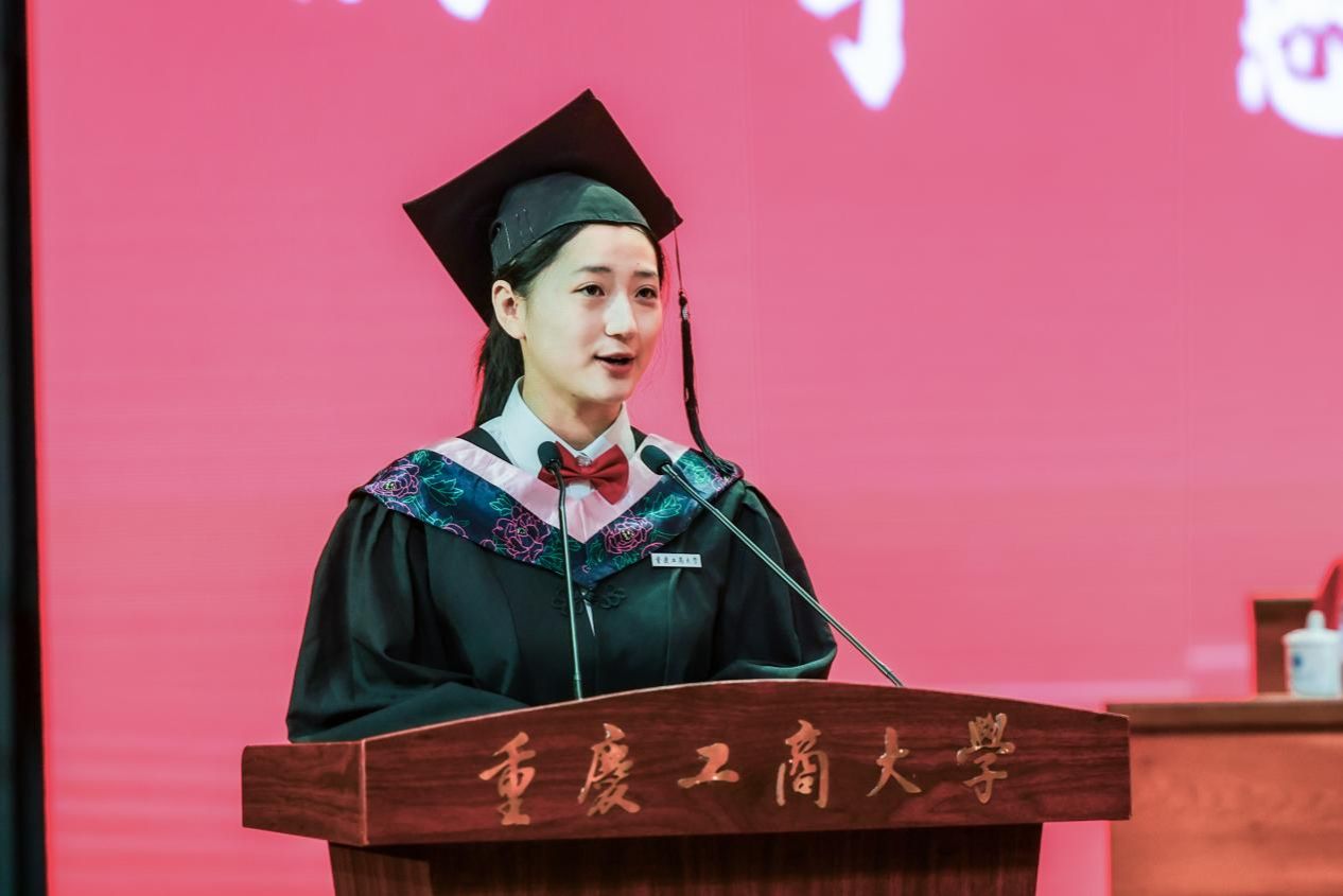 “无论我们奔赴大洋彼岸,还是扎根西部边疆;无论选择继续深造,还是投身基层建设,请记住,我们有一个共同的名字——‘重工商大人’。”毕业生代表张炜嘉向辛勤培养她的母校、领导和老师致以最衷心的感谢和最崇高的敬意。她希望同学们带着母校期许、老师嘱托和同窗友谊勇毅前行。