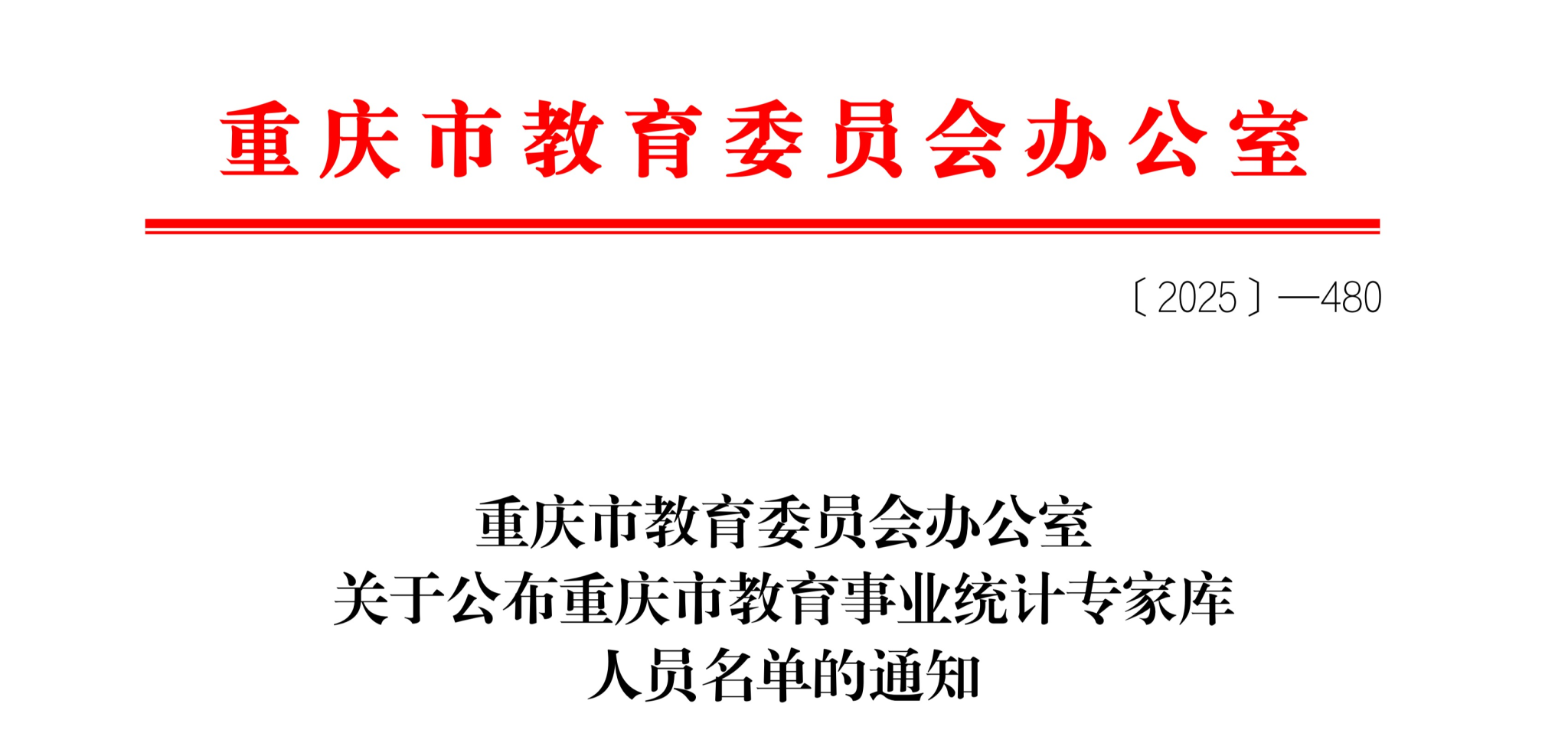 近日,重庆市教育委员会办公室印发《关于公布重庆市教育事业统计专家库人员名单的通知》,经单位推荐、市教委组织遴选,万象城官网王洪、杨炜明入选2025年重庆市教育事业统计专家库。