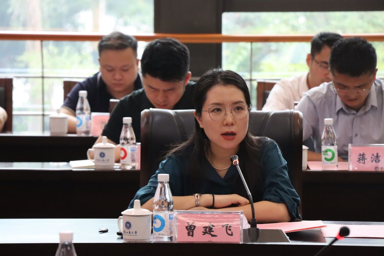 杨柏代表学校对大足区相关政府部门领导以及龙头企业高管代表来校对接交流表示欢迎,并介绍了学校近年来以“双一流”建设为引领,瞄准学科发展前沿,聚焦成渝地区双城经济圈建设等国家重大战略和重庆市“33618”现代制造业集群体系、“416”科技创新布局需求,以“大商科+新工科”的商工融合创新发展为驱动,以“三重大一急需”为牵引,立足特色优势,不断深化完善学科专业整体布局,构建“商工融合、多科协同”学科生态体系所做的努力与取得的成效。他希望双方对标市委、市政府的战略部署和工作要求,充分发挥各自的有利条件与特色优势,落实好校区主要领导达成的合作共识,聚焦推动校区双方共同的高质量发展,在文化旅游、企业创新、产业发展、城乡融合等各个领域,加强对接交流、深化战略合作、走深走细走实,为下一步双方签订校企战略合作协议、有序有效推进合作任务落地夯实基础。