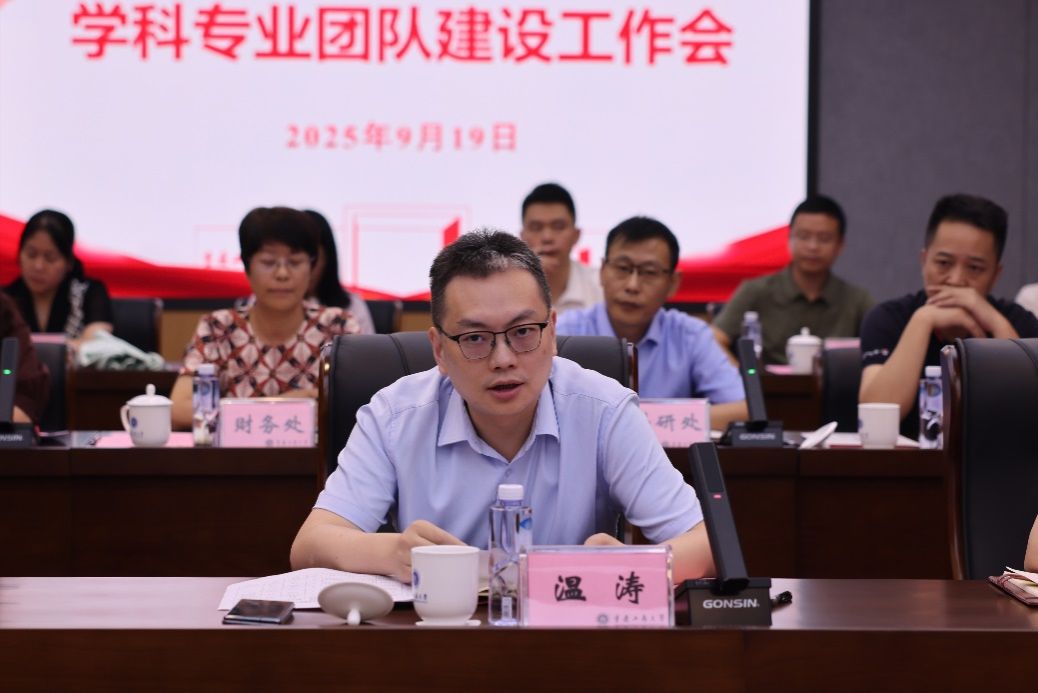 温涛介绍了2025年学科专业团队遴选建设的情况,他指出,学科专业团队是学校学科建设的 “核心引擎”,是推动学校教育教学改革、产出高水平科研成果、培育高素质人才的关键力量。面对当前高等教育竞争新格局与区域经济社会发展新需求,学科专业团队建设不能仅仅局限于“做研究”,更是要立足立德树人根本任务,发挥育人功能,推进高质量人才培养,学科专业团队建设是学校有组织科研和人才培养的重要举措。