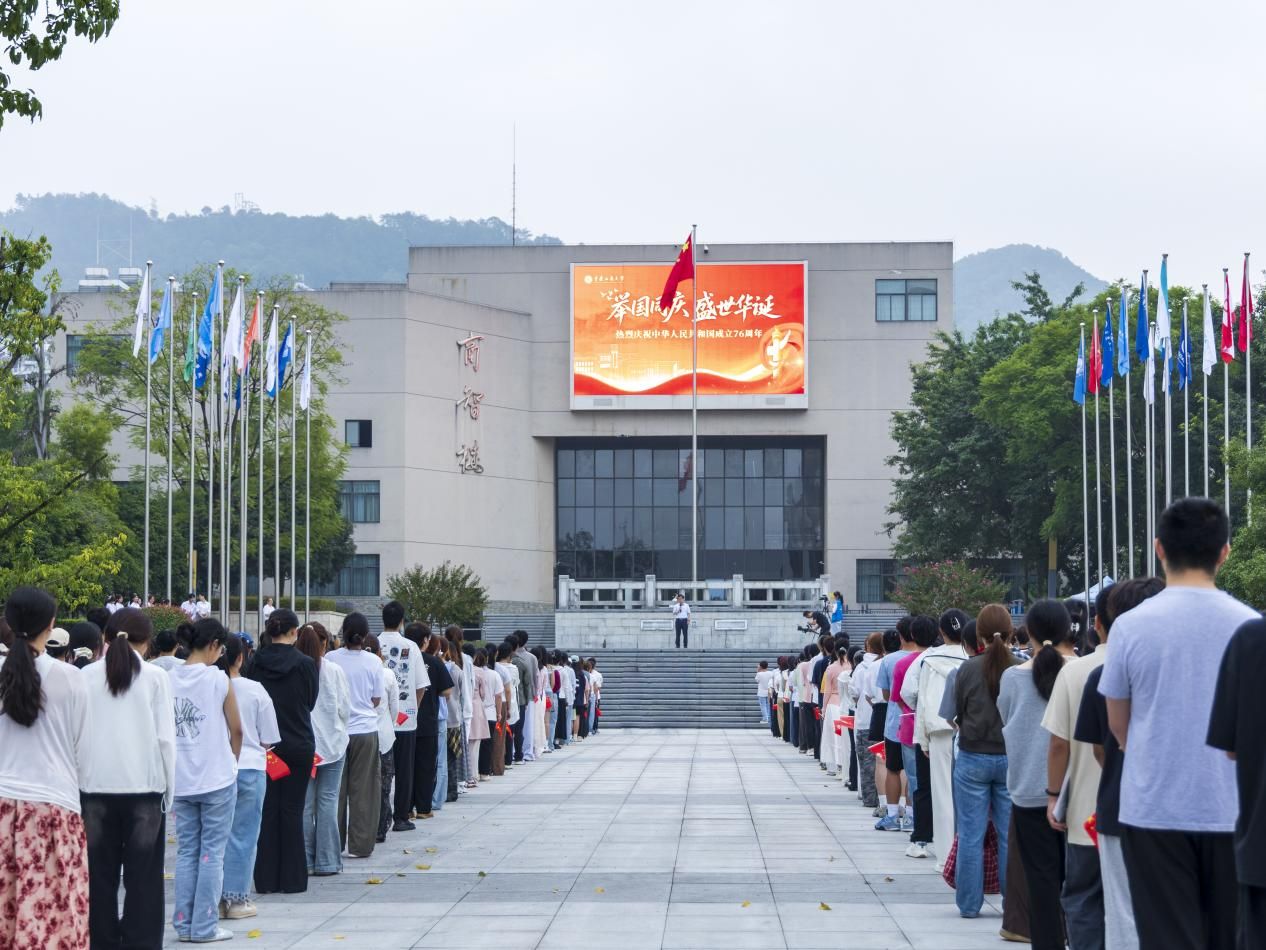 10月1日上午,学校在含弘广场隆重举行国庆升国旗仪式。庆祝中华人民共和国成立76周年,为伟大祖国送上美好祝福,致敬伟大祖国。
