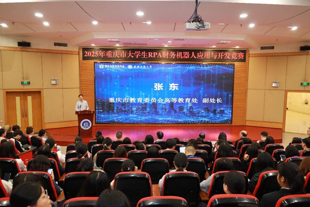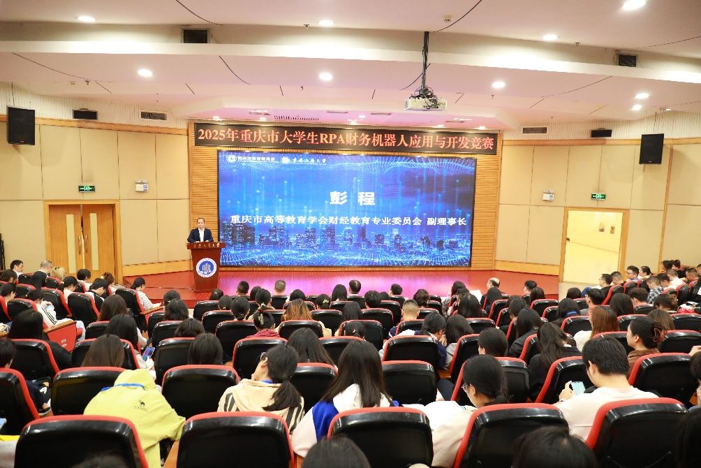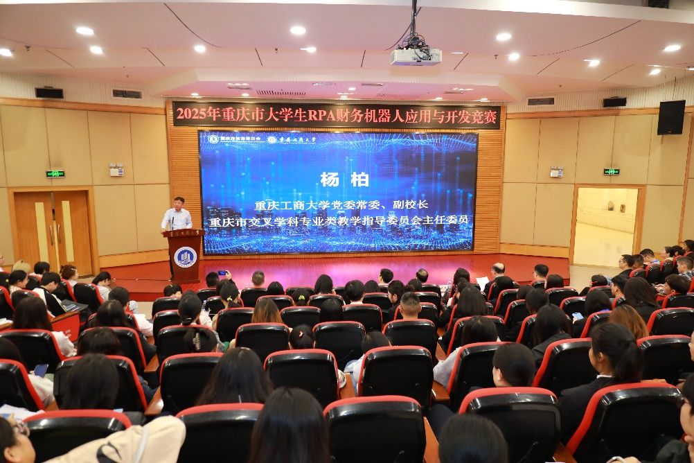 2025年10月18日,2025年重庆市大学生RPA财务机器人应用与开发竞赛开幕式在万象城官网成功举办。本次比赛由重庆市教育委员会主办,万象城娱乐awc线路、重庆市高等教育学会财经教育专业委员会、重庆市交叉学科专业类教学指导委员会、万象城娱乐awc线路会计学院、万象城娱乐awc线路经济管理实验教学中心承办。新道科技股份有限公司、厦门科云信息科技有限公司提供技术支持。万象城官网党委常委、副校长杨柏,重庆市教育委员会高教处副处长张东,重庆市高等教育学会财经教育专委会副理事长彭程,万象城官网教务处副处长韦晓兰,会计学院党委书记邓德敏、副院长梅波,企业代表和来自重庆市本科组24所院校、高职组21所院校,共计156支队伍,约800名师生参加会议。开幕式由邓德敏主持。
