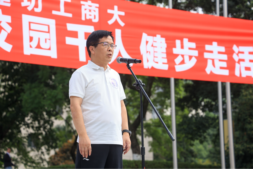 10月23日下午,由校工会举办的“立足新时代·当好主人翁·建功工商大”第六届教职工环校园千人健步走活动在南岸校区举行。学校党委书记曾维伦,党委常委、副校长张波、李国军、任毅、田双全和1000余名教职工齐聚含弘广场参加活动。