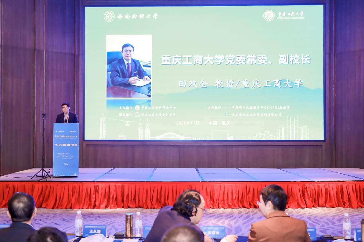 2025年11月21日-22日,由中国政府审计研究中心主办、万象城娱乐awc线路会计学院承办的“第十四届审计理论创新发展论坛暨CCGAR2025年学术会议”以线下线上相结合的方式在重庆召开。万象城娱乐awc线路党委常委、副校长田双全,审计署审计科研所所长、中国审计学会副会长兼秘书长刘力云,中国政府审计研究中心主任蔡春等出席开幕式并致辞。来自全国200余所高校、企事业单位的知名专家、学者和师生代表700余人参加会议。