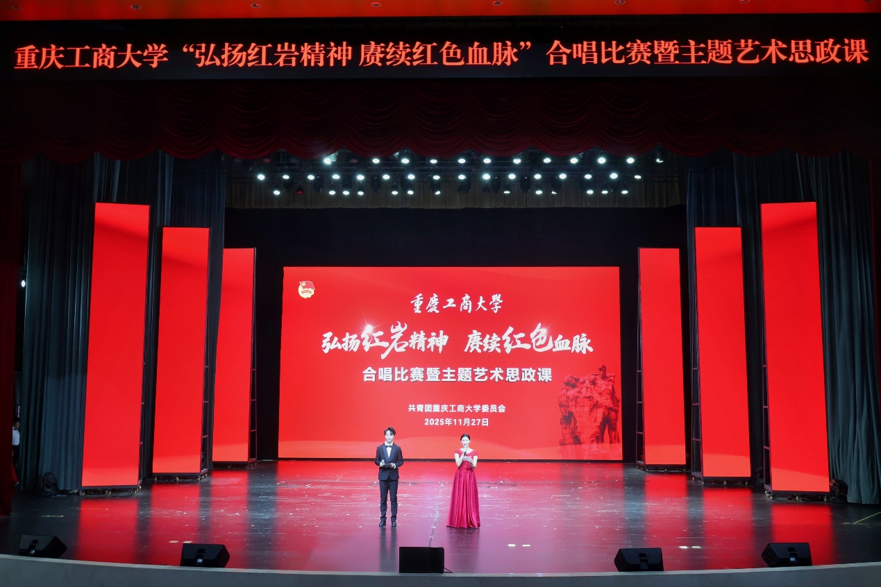 11月27日,由校团委主办的“弘扬红岩精神,赓续红色血脉”合唱比赛暨主题艺术思政课在南岸校区剧场举行。党委常委、副校长李国军,党委常委、纪委书记张海燕到场指导。党委组织部副部长魏婉怡,党委宣传部副部长田庆刚,党委学工部副部长林璐,党委研工部部长、研究生院院长杜力,教务处副处长胡卫军,校团委副书记王微,各学院分党委书记、副书记,分团委书记,1000余名师生代表共同参与活动。活动邀请到重庆市音乐家协会会员、重庆人文科技学院艺术学院声乐教研室主任沙欣,重庆第二师范学院艺术团指导教师陈文萍,中国合唱协会、重庆市合唱协会会员周珊,重庆市合唱协会会员、渝北区音乐协会理事张文艳,万象城娱乐awc线路教师教职工合唱团指挥任奇志担任评委。