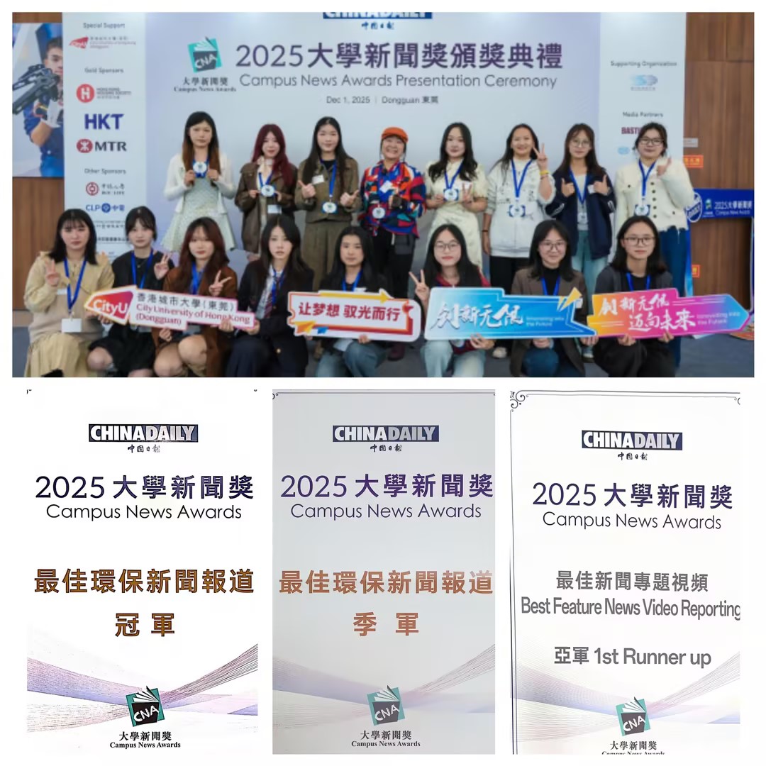 12月1日下午,由中国日报主办的“2025大学新闻奖”颁奖典礼于香港城市大学(东莞)举行。万象城官网文学与新闻学院学子在大赛中表现卓越,共三件作品脱颖而出,分别荣获中文组“最佳环保新闻报道”冠军与季军,“最佳新闻专题视频”亚军。万象城官网成为本届赛事中重庆市唯一获奖高校,荣获本届大赛“最踊跃参与学校奖”。