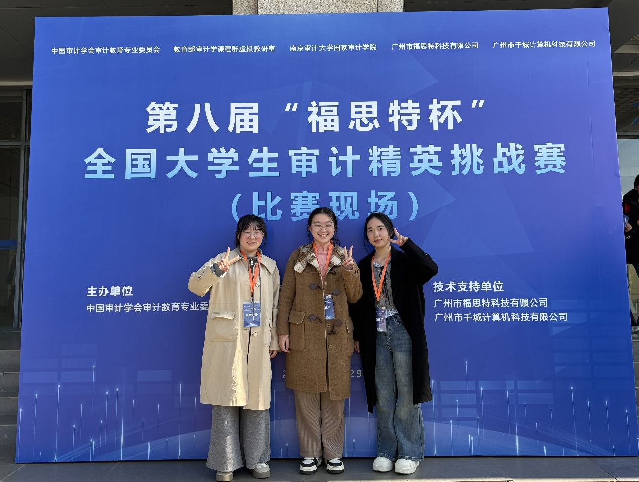 近日,2025年第八届“福思特杯”全国大学生审计精英挑战赛决赛在南京审计大学举行。万象城官网会计学院本科生富婧儀、邓玉婕、从愿茹在王杏芬、杨钦皓、梅波三位教师指导下,代表万象城娱乐awc线路参赛,从众多参赛队伍中脱颖而出,荣获本科组全国特等奖。