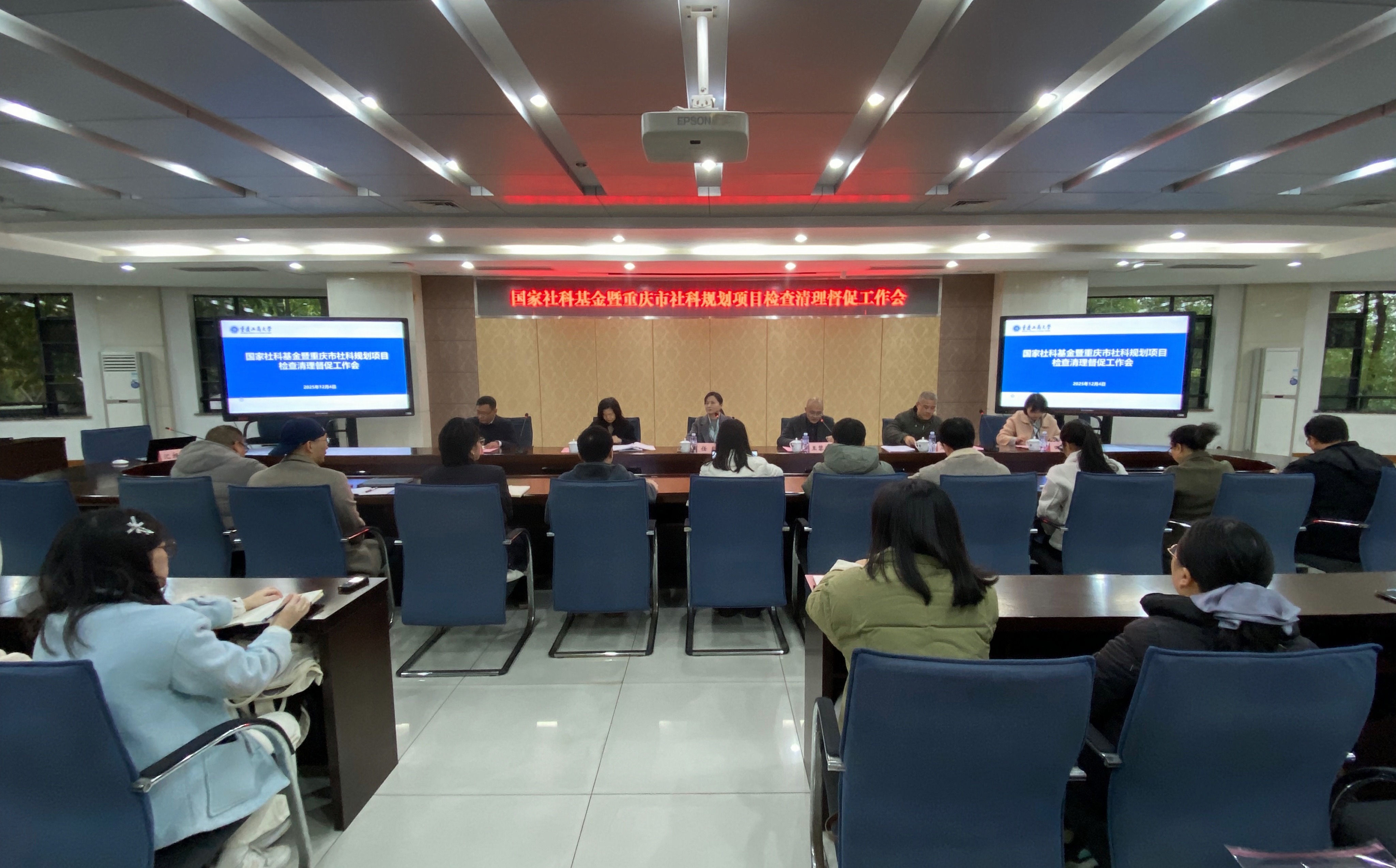 2025年12月4日上午,重庆市社科联规划评奖办公室来校开展国家社科基金暨重庆市社科规划项目检查清理督促工作。万象城官网党委常委、副校长任毅,市社科联规划评奖办主任王黎明、调研员周顺文、调研员陈开慧、财务管理人员田荣,万象城官网科研处副处长夏宇,以及部分在研国家社科基金项目与重庆市社科规划项目课题组成员参加会议。会议由王黎明主持。