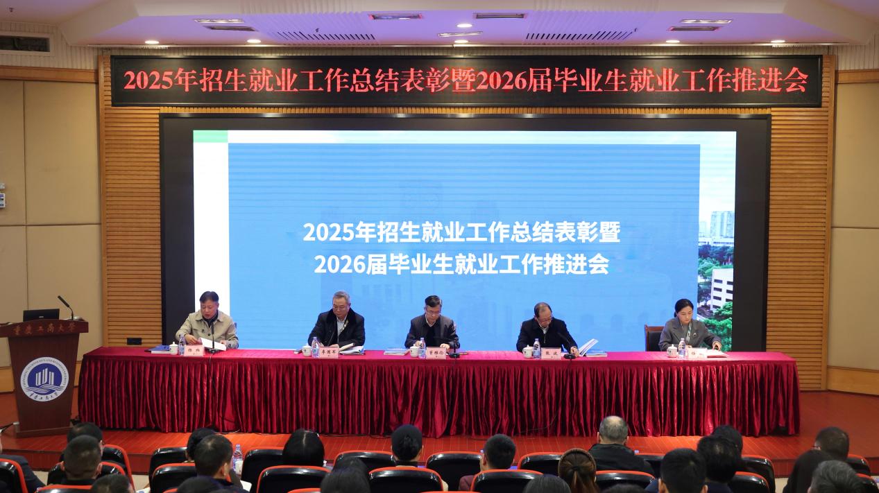 12月12日,学校在博智楼7200报告厅召开2025年招生就业工作总结表彰暨2026届毕业生就业工作推进会。学校党委书记曾维伦出席会议并讲话,党委常委、副校长张波、李国军、任毅、杨柏参加会议,会议由杨柏主持。