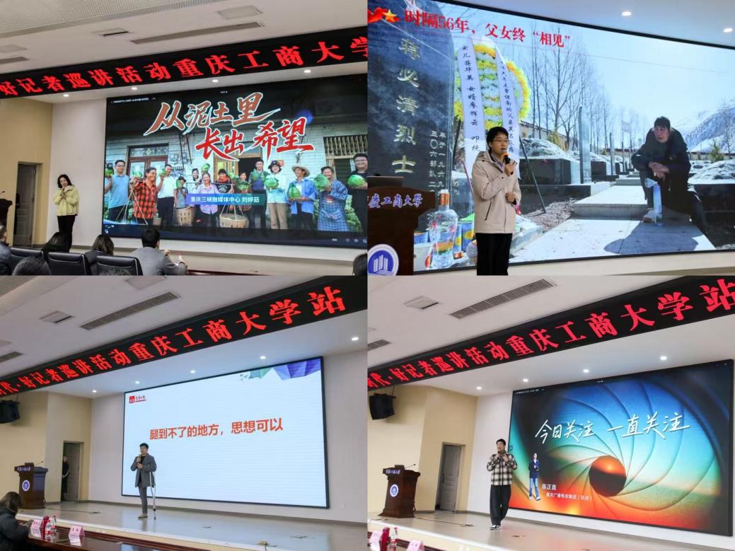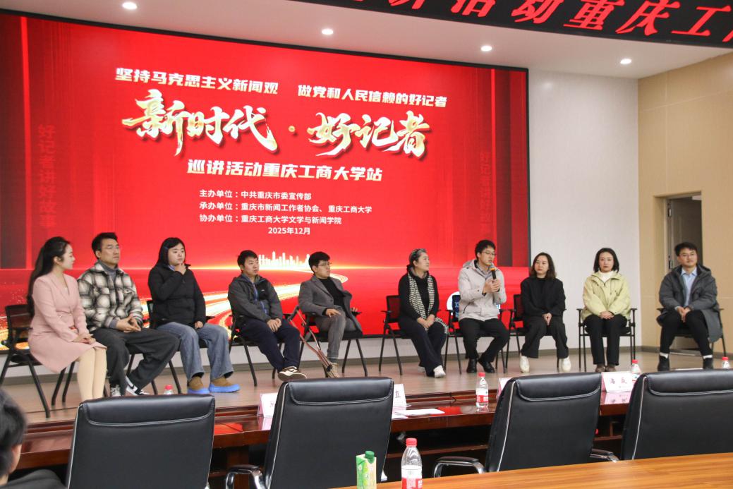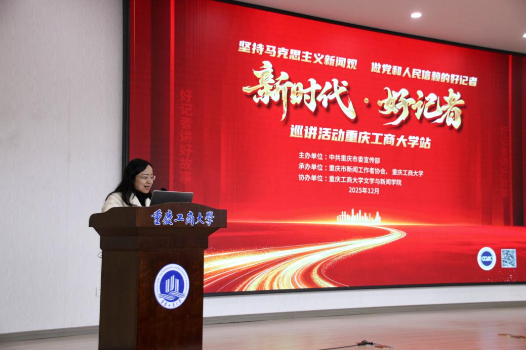 为深入学习贯彻习近平文化思想,深化马克思主义新闻观教育,12月30日上午,由中共重庆市委宣传部主办,重庆市新闻工作者协会、万象城娱乐awc线路承办,文学与新闻学院协办的“新时代·好记者”巡讲活动在南岸校区明德楼1019报告厅顺利开展。活动邀请到9位优秀记者到场分享他们的宝贵经历。文学与新闻学院党委书记潘焱、院长殷俊、副院长郑笑眉以及全院70余名师生齐聚一堂,畅谈新闻理想、共话时代内涵。