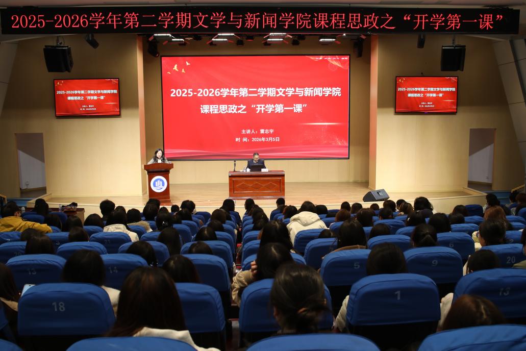 3月5日下午,文学与新闻学院2025-2026学年第二学期课程思政之“开学第一课”在南岸校区明智楼报告厅顺利举行。学院邀请重庆市委网信办副主任雷志宇为学院学子作了“当战争进入算法时代——AI浪潮下的网络意识形态安全与青年担当”主题讲座。学校党委书记曾维伦,校党委常委、宣传部部长、文学与新闻学院院长杨维东,学院党委书记、副院长潘焱,党委副书记、纪委书记程元元,副院长郑笑眉、荣婷,专职组织员王欢、全体辅导员老师及400多名本科生和研究生到场参加。