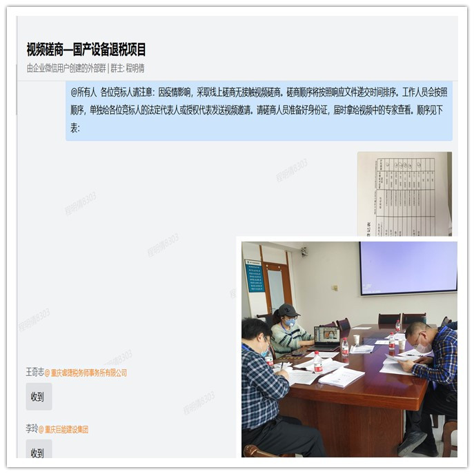 积极探索,大胆创新“互联网+”的招投标评审工作模式。在没有电子化招投标系统的情况下,做好疫情防控的同时充分利用“重庆市政府采购云平台”、“企业微信”等信息化手段,试行“供应商线上递交响应文件”和“专家线下查阅标书+供应商线上答辩”相结合的评审方式,有效减少人员聚集。近期已开展政府债券发行所需购买服务、2020-2021年外文纸质图书购置、2019年万象城官网采购国产科教设备增值税退税服务、2020-2021图书馆数字资源购置、自助图书杀菌除尘设备购置、工程建设项目等多个急需项目的招标工作。
