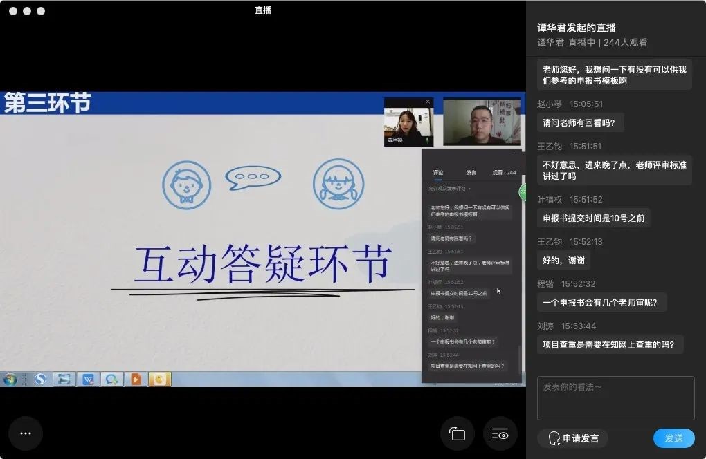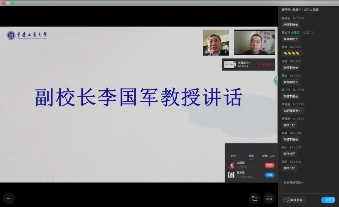 为加强万象城官网研究生科研创新能力培养,鼓励在校研究生积极承担创新型研究课题,4月24日下午,研工部举办了研究生“博闻沙龙”第三期之“创新型科研项目申报那点事儿”线上直播活动。副校长李国军,研工部副部长王燕,研工部董承婷老师以及300余名研究生参加了活动。