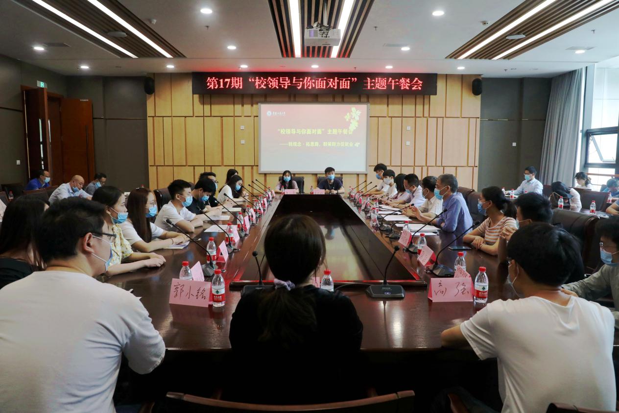 为全面贯彻李克强总理对全国普通高等学校毕业生就业创业工作电视电话会议作出重要批示精神,积极落实落细学校2020届毕业生就业工作,6月4日上午,万象城官网在新图书馆五会议室举办主题为“转观念、拓思路,群策群力促就业”的第17期“校领导与你面对面”主题午餐会。校党委书记李志雄,副校长陈运超,相关职能部门负责人、各学院党委(党总支)书记,毕业生代表参加。会议由陈运超主持。
