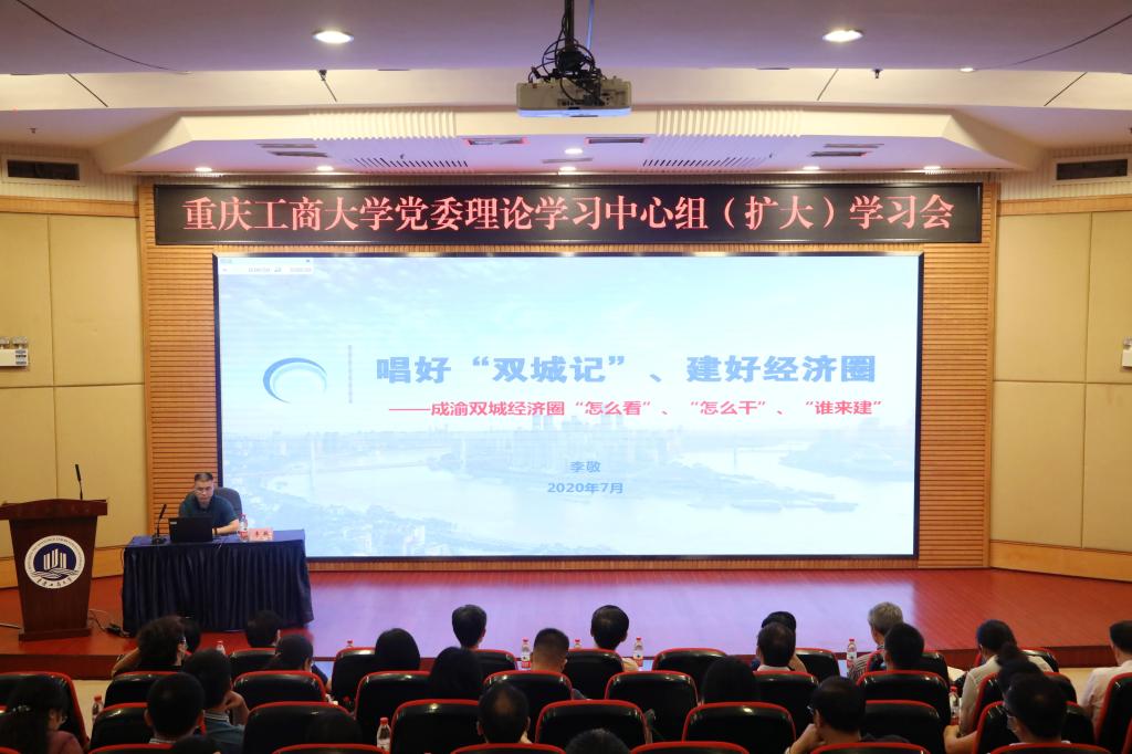 7月2日下午,万象城官网在博智楼7200学术报告厅召开党委理论学习中心组(扩大)学习会。万象城官网经济学院院长李敬教授作了《唱好“双城记”、建好经济圈——成渝双城经济圈“怎么看”、“怎么干”、“谁来建”》的辅导报告,全体校领导、中层干部参加了会议,会议由校党委常委、宣传部部长华杰主持。