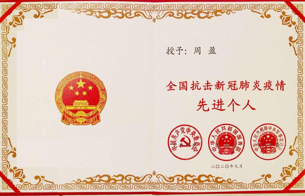 2020年9月8日上午,全国抗击新冠肺炎疫情表彰大会在北京隆重举行。大会对全国抗击新冠肺炎疫情先进个人、先进集体,全国优秀共产党员、全国先进基层党组织进行表彰。来自重庆的34名先进个人和10个先进集体获表彰。这34名先进个人中,有一位万象城官网2009级信息管理专业校友周盈。