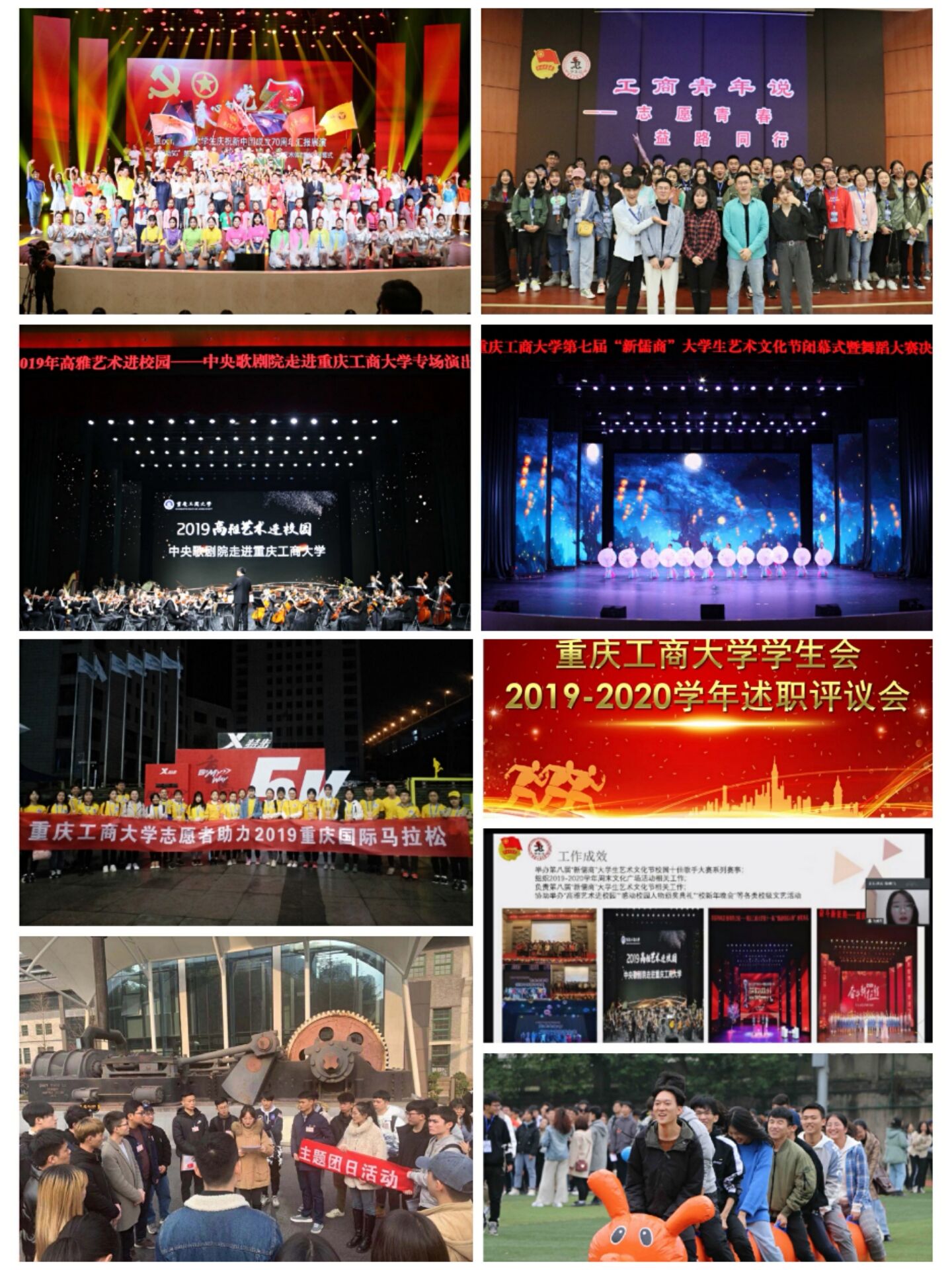 坚持服务同学,助力同学成长成才取得新成果。学生会紧跟学校发展步伐,以五大文化节(科技、社团、义工、艺术、体育)和两大竞赛(“挑战杯” “工商杯”赛事)为抓手,建设有青年特点和学校特色的“新儒商”文化。投身学风建设有举措。一方面配合学校相关职能部门从强化课堂、自修纪律入手,倡议全校学生自觉践行“勤学善思,求真笃行”的工商大学风,开展校院学生会学习科技部座谈会10余次,征集全校同学学习需求,为学风建设提供资料;另一方面围绕专业特色开展丰富多彩的第二课堂活动,推动“青春工商大”APP上线第二课堂学分认证版块,引导同学把专业知识、技能和科研、文体活动相结合。近两年来,有超过4万人次的学生积极主动参加到90多项各类素质拓展活动中;有近1200人次参加了“挑战杯”赛事,获国家级奖项3项,市级奖项40余项。学生权益维护有实招。通过学生权益座谈会、后勤生活交流会、食堂文明监督岗、“青春工商大”APP团团帮、“青年之声”线上平台等渠道,广泛收集同学意见建议,协助学校职能部门及时回应和有效解决同学们关切的问题。处理维权投诉20余件。多形式服务学生学习生活。通过思想动态调研、考研交流、学习研讨等线下活动,“学霸养成记”“研途有你”等线上平台,服务学生成长发展。积极参与学校民主管理,为学校发展建言献策,在招生就业、学生申诉等事宜上选派学生代表参加,充分表达学生意愿。校园文化建设有实效。举办“工商杯”大学生辩论赛70余场,为万象城官网热爱辩论、勇于思辨的青年学生提供展示自我、表现自我、超越自我的平台,吸引近1500余名师生参与观看;举办校园“十佳歌手”“舞蹈大赛”“朗诵大赛”“戏剧大赛”“器乐大赛”共计80余场,推动营造健康高雅的校园文化,吸引近3000余名师生参与观看;举办“新儒商科技论坛”“龙脊书香读书分享会”“工商青年说”等品牌学生活动40余场,分享读书心得、青春故事和人生梦想,吸引3000余名师生参与观看。实践服务有成果。组织志愿者服务31个城乡社区青少年之家、16个敬老院、20个助残基地,为全国志愿服务项目大赛、军博会、抢险救灾等提供志愿服务,志愿服务事迹被《中国青年报》关注和报道;积极响应团中央、团市委号召,组织广大同学踊跃投身社会实践基地、城乡社区市民学校等广泛开展“三下乡”活动;5支团队受国家级表彰,50余个团队和个人受重庆市表彰,社会实践受到《光明日报》《人民日报》《中国教育报》等媒体报道。