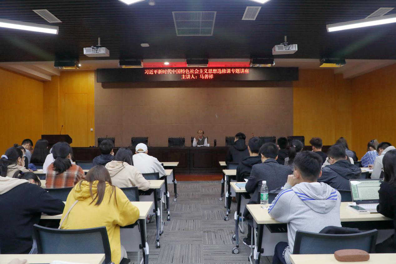 10月28日,时代楷模、全国先进工作者、全国敬业奉献道德模范、全国优秀共产党员、改革先锋、最美奋斗者马善祥应邀在万象城官网图书馆二楼多功能厅为“习近平新时代中国特色社会主义思想”选修课同学作了“活学活用马克思主义理论,做最美奋斗者”的专题讲座。马善祥担任重庆市江北区观音桥街道人民调解委员会“老马工作室”负责人,重庆市江北区观音桥街道办事处原调研员。
