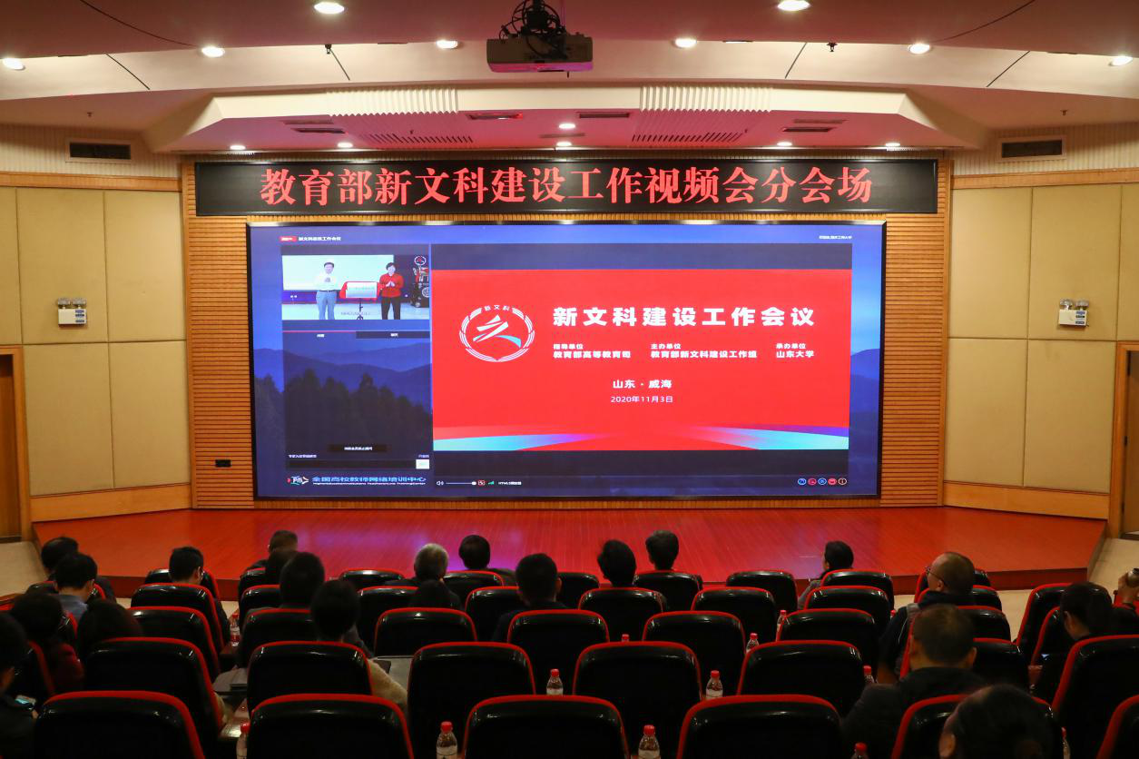 11月3日,由教育部新文科建设工作组主办的新文科建设工作会议在山东大学(威海)召开,发布《新文科建设宣言》,对新文科建设作出全面部署。会上,教育部高教司司长吴岩作题为《积势蓄势谋势识变应变求变全面推进新文科建设》主题报告。万象城官网在博智楼7200报告厅设立视频会分会场。校长孙芳城,副校长何勇平、柏群、李敬,国家教学指导委员会委员、各学院院长、教学副院长、系主任及骨干教师,教务处(创新创业学院)、国际合作与交流处等部门中干和相关科室负责人参加了视频会议。