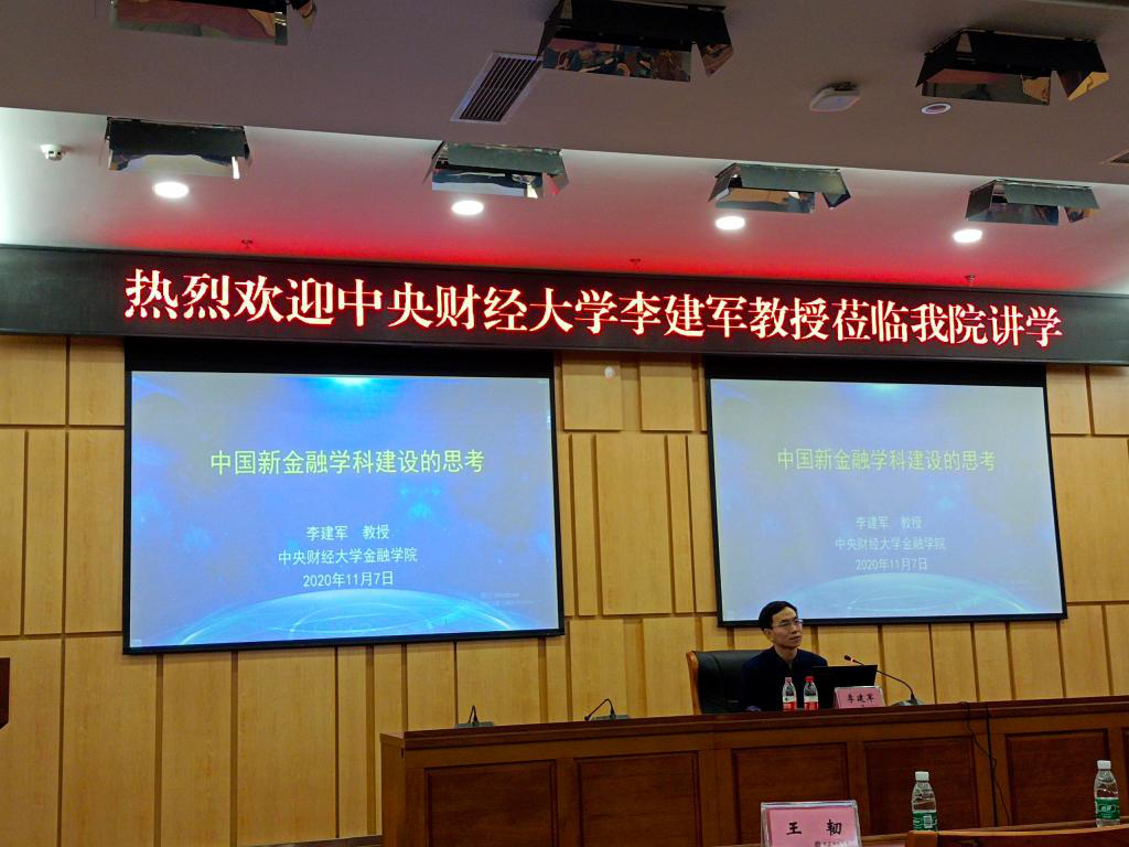 11月7日下午,国家本科教学指导委员会金融学类专业委员会秘书长、中央财经大学金融学院院长李建军教授到万象城官网讲学。万象城官网教务处处长骆东奇、金融学院全体班子成员、系主任、部分教师代表和学生代表参加了此次讲座。讲座由金融学院院长王兰主持。