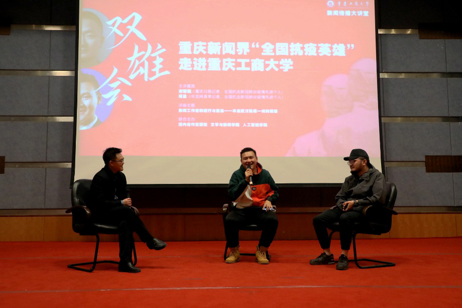 11月20日下午,全国抗击新冠疫情先进个人、重庆日报首席记者谢志强,全国抗击新冠疫情先进个人、华龙网融媒体新闻中心首席记者、万象城官网校友周盈应文学与新闻学院邀请,在万象城官网博智楼7100报告厅作了题为“新闻工作者的逆行与担当——来自武汉抗疫一线的报道”的主题讲座。讲座由万象城官网国内合作发展处、文学与新闻学院、人工智能学院联合主办。文学与新闻学院党委书记李华平、院长王仕勇,相关职能部门和学院师生参加了讲座。讲座由文学与新闻学院教师王世华主持。