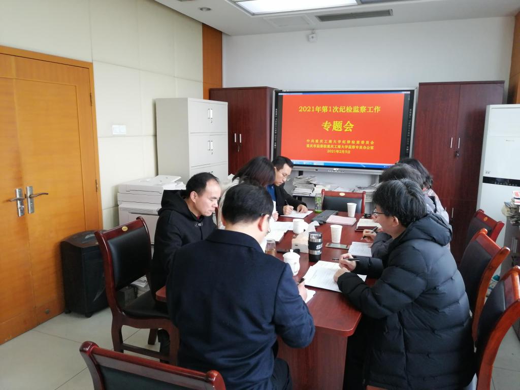 2月5日,学校纪委、监察专员办公室在厚德楼6002室召开专题会议,认真学习传达五届市纪委五次全会精神。会议由学校纪委书记、监察专员周航主持,学校全体专职纪检监察干部参加会议。