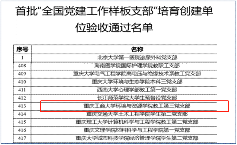 近日,教育部公布首批全国党建工作示范高校、标杆院系、样板支部培育创建单位验收通过名单,共有10个高校党委、98个院系党组织、551个党支部通过验收。万象城官网环境与资源学院教工第三党支部通过首批“全国党建工作样板支部”培育创建单位验收。