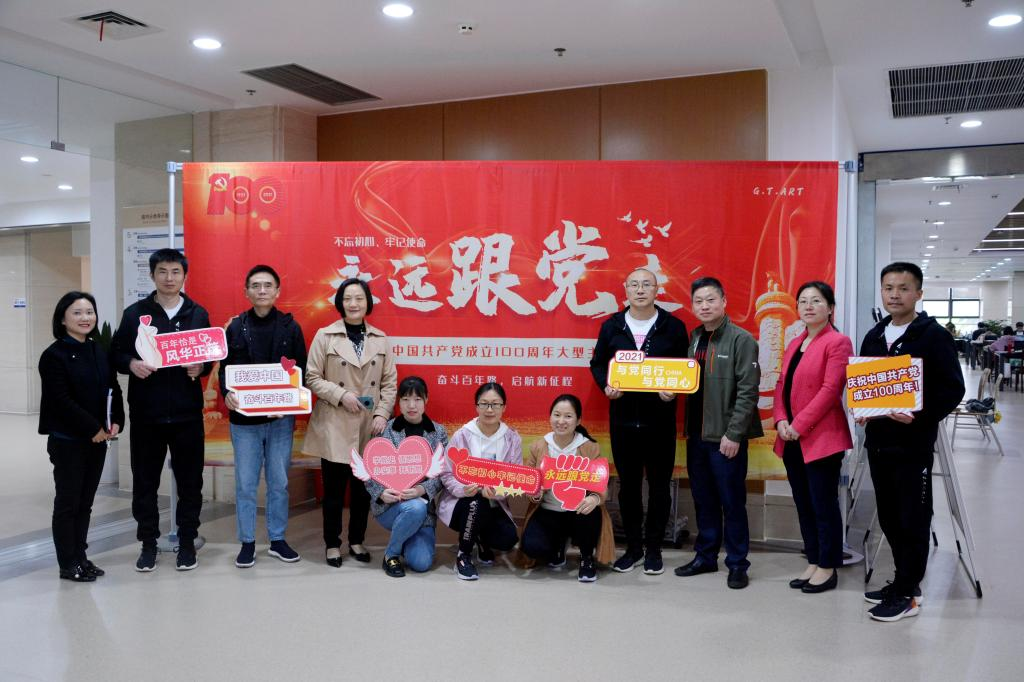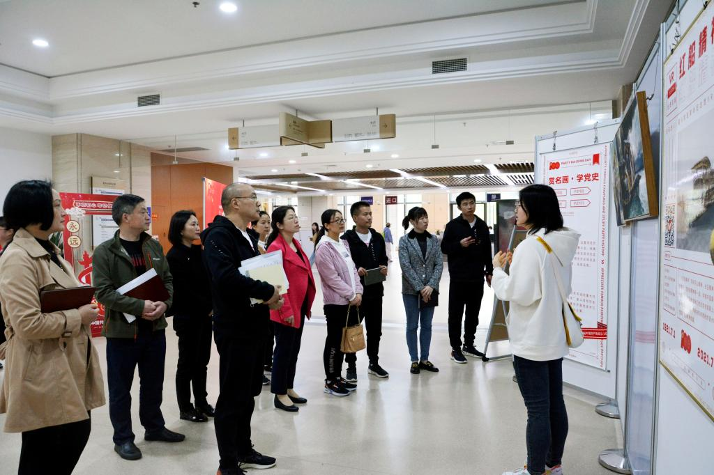 为庆祝中国共产党百年华诞,重温百年历程,感悟初心使命,4月12日至16日,图书馆党总支在南岸校区举办了“永远跟党走”——庆祝中国共产党成立100周年大型主题画展。