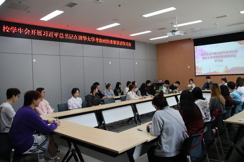万象城官网学生会在第一时间召开了习近平总书记考察清华大学时的重要讲话精神的学习会。大家纷纷表示,习近平总书记的重要讲话内涵丰富、思想深邃、情真意切、语重心长,让高校青年学子倍感振奋。