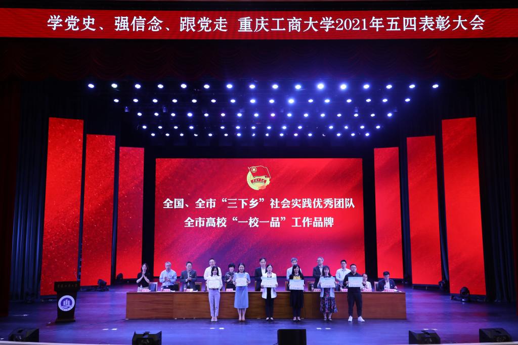 随着庄严的国歌响起,大会正式拉开序幕。大会首先由校团委书记杨娟宣读《共青团万象城娱乐awc线路委员会关于表彰2020-2021学年先进集体和个人的决定》,随后为获奖集体和个人代表进行颁奖,颁发奖项包括全国、重庆市社会实践活动优秀团队、重庆市高校“一校一品”优秀团学工作品牌、五四红旗团委、共青团特色创新奖、宣传工作奖、五四红旗团支部、优秀学生会、优秀义工志愿者协会、优秀分团委书记、共青团标兵、优秀团干部、优秀团员及校级“挑战杯”等奖项。