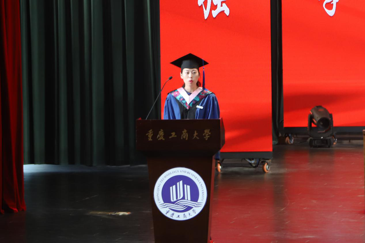 良辰美景匆匆,转眼毕业已至。离别之际,总有感触良多。毕业生本科生代表王峻来、毕业生研究生代表高静同学分别作了发言。他们表达了对父母养育之恩、师长倾囊相授、同窗陪伴支持的感恩之情,同时也祝学校70岁生日快乐,并表示他们将带着母校希冀和嘱托,用激情和勤奋实现自己的人生理想,用成长、成才继续述说重工商大人的精彩。