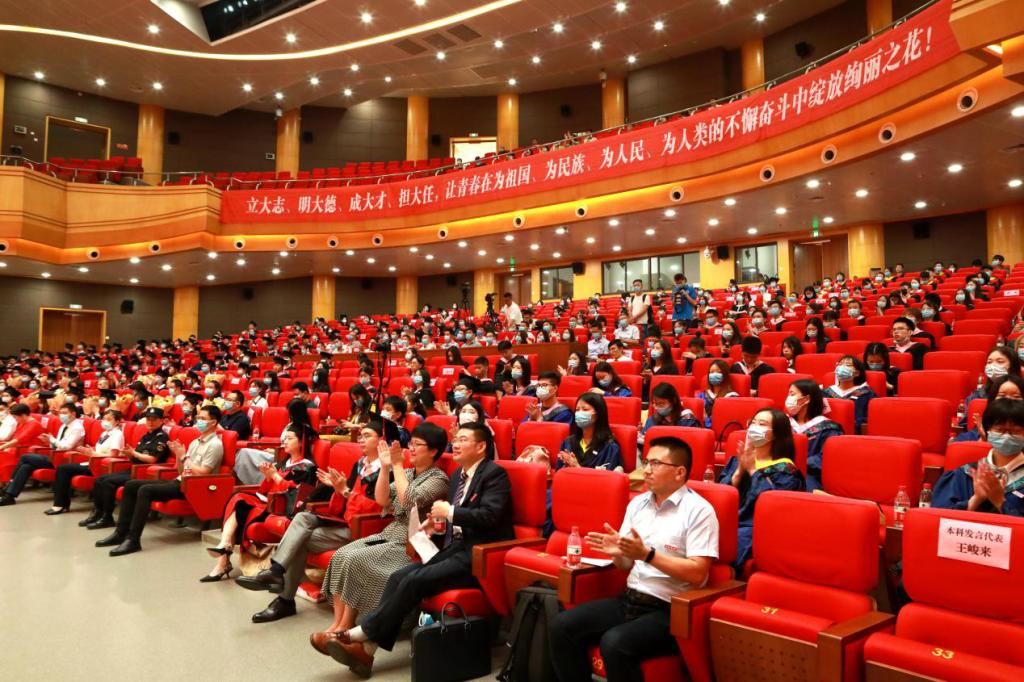 孙芳城讲话。他谈到,在这几年中,从相遇相识到相助相知,从求教问学到探寻真知,同学们已经与校园融为一体,在青葱岁月里迷茫,却又始终斗志昂扬,也在大学中完成了华丽的蜕变。他希望,同学们无论身处何时何地,平顺或者坎坷,都要坚定勇敢地去追寻和点亮生命中的那些辉光。一是点亮生命中的理想之光。百年奋斗史,气吞山河、波澜壮阔。让理想指引自己前进、奋斗,充分发挥自己所学和才干,让自己的价值在实现民族复兴的征程中熠熠生辉。二是点亮生命中的奋斗之光。奋斗,是实现人生价值的桥,是通往理想的路。用永不懈怠的精神状态和一往无前的奋斗姿态,一步一个脚印,踏踏实实、勤勤恳恳,去实现自己的人生价值。三是点亮生命中的原初之光。常思过去,明晰将来。坚持自我,走好接下来的路。“艰难困苦,玉汝于成”,希望大家坚守初心,一路披荆斩棘,成就自己的人生。他期待,在明年的70周年校庆仪式上可以和大家再聚首。