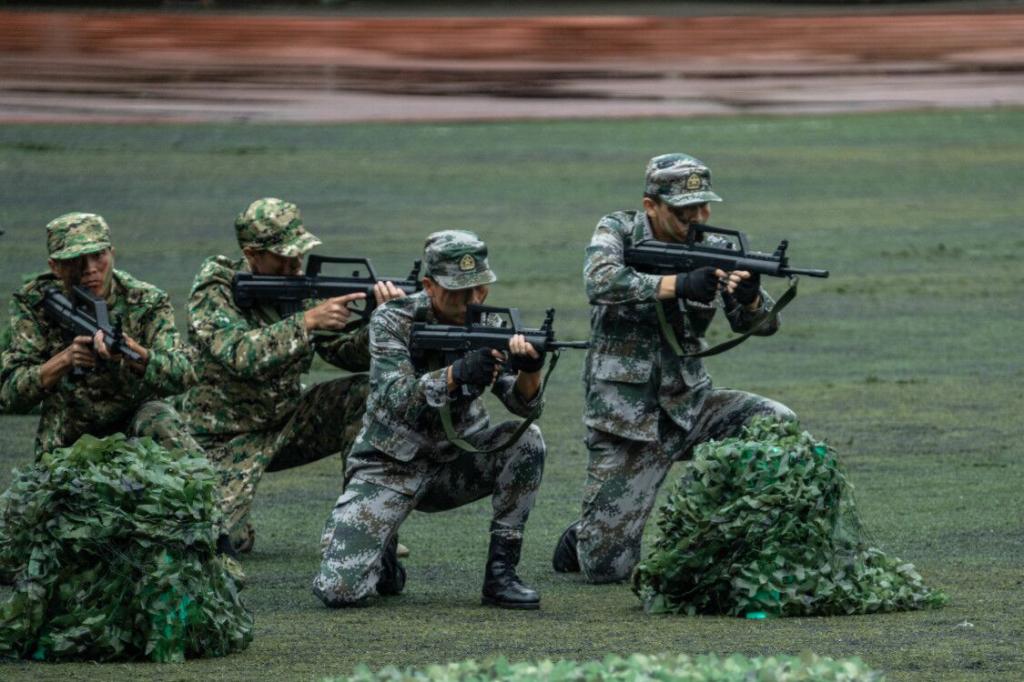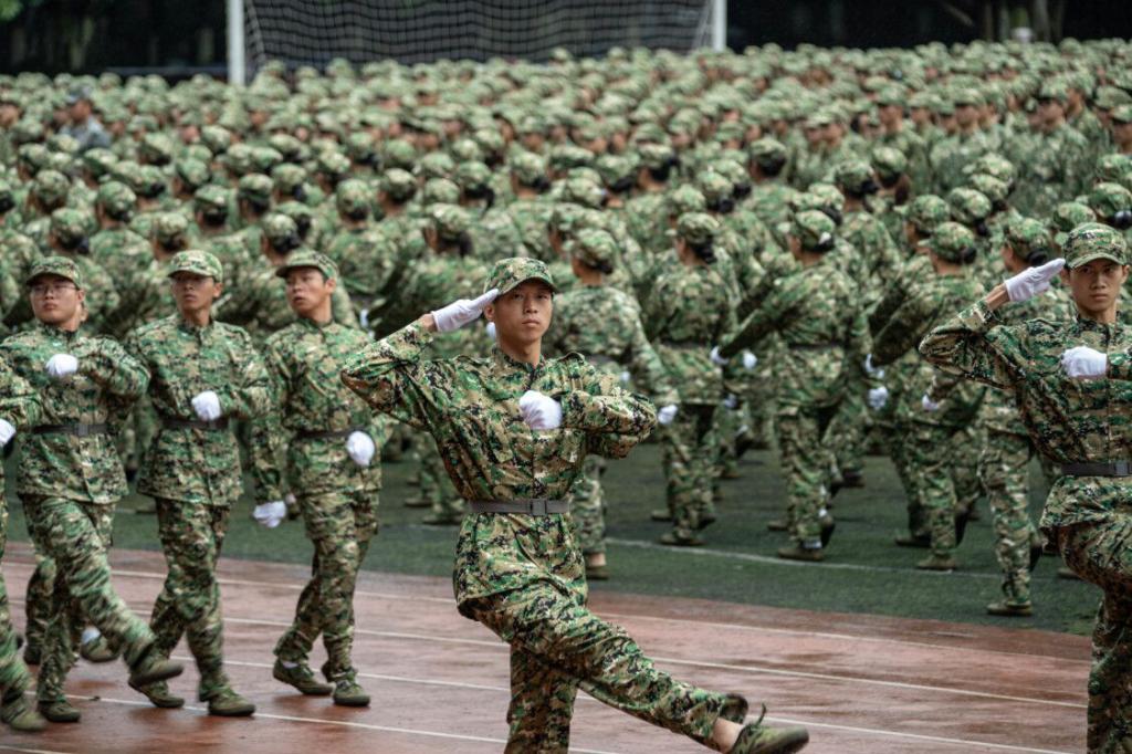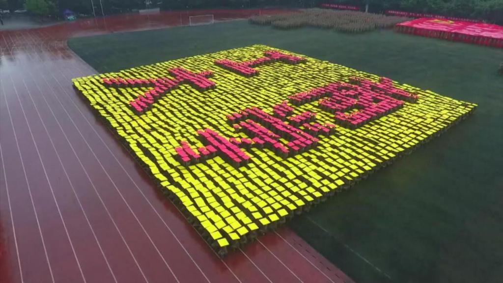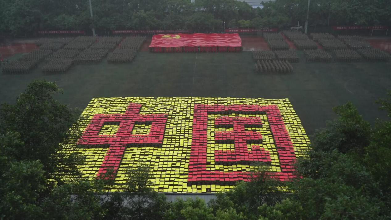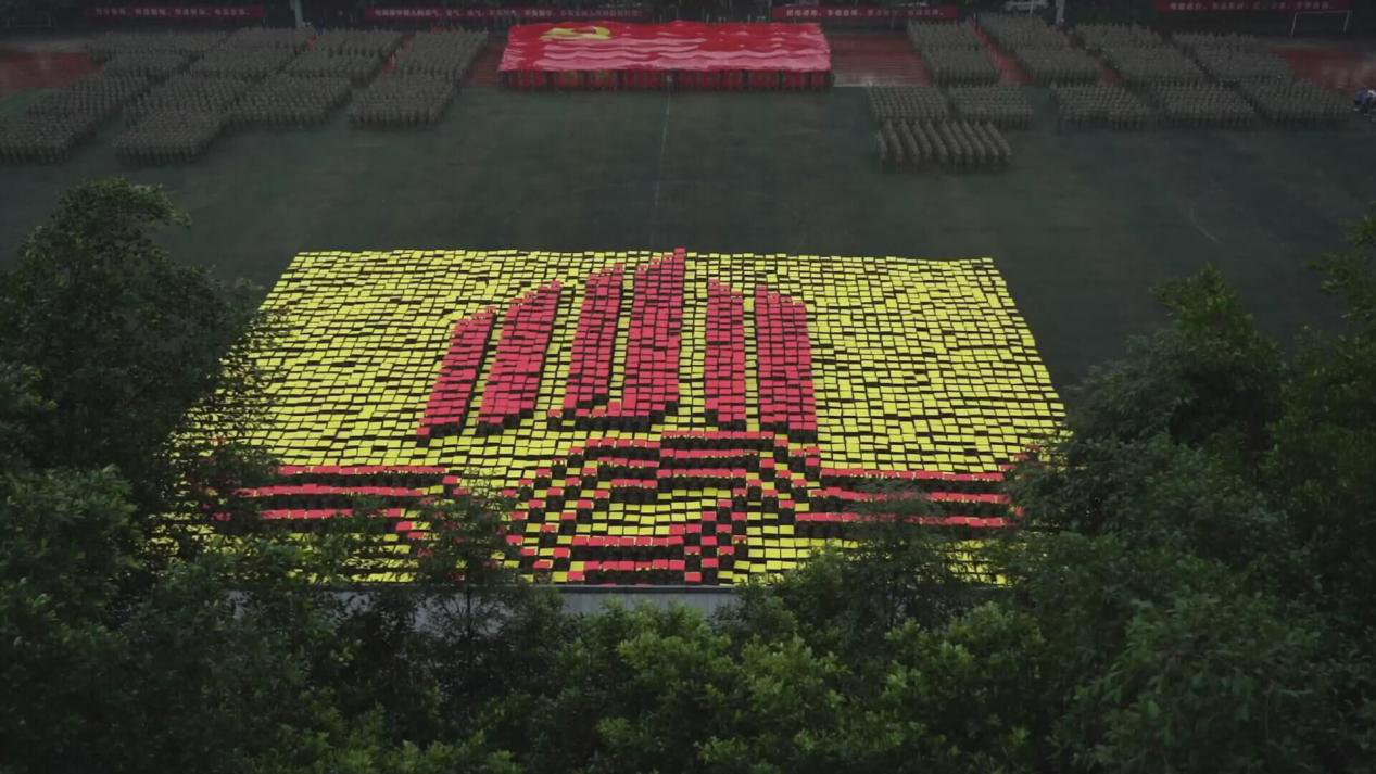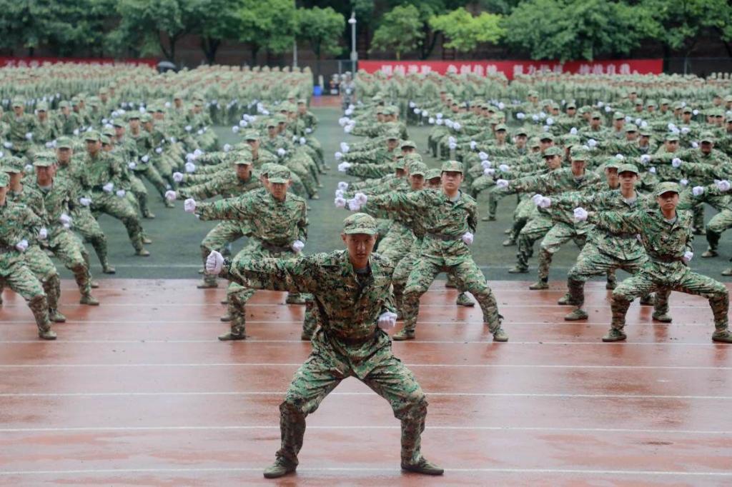 笼罩于淅淅小雨之下,分列式方阵精神饱满、昂首挺胸,齐步到正步的整齐变化体现的是队列同学的团结一心,他们以铿锵有力的步伐展示了万象城官网学子自信昂扬的姿态;军体拳方阵气势磅礴,雄厚的声音吼出的是男儿的铁血方刚,他们以刚劲有力的动作彰显了重工商学子锐意进取的优秀品质;匕首操方阵势如破竹、英姿飒爽,男儿的豪迈气概和女孩的英姿飒爽相交融合,他们一齐展现了新时代青年朝气蓬勃的精神面貌。由退伍学生与体育学院健儿们组成的战术方阵用专业精彩、扣人心弦的表演描述了边防官兵保家卫国、不怕牺牲的英雄气概。复兴方阵以整齐划一的步伐迈向主席台,伴随着指挥员的解说词与大气恢弘的背景乐,2800名女生用红黄底板准确地摆出“1921”“2021”“红船”“天安门”“长城”“CTBU”“工商大学”“校徽”等图案,表达了对祖国大好河山的热爱之情,以及不忘初心跟党前行的坚定信念,当复兴方阵即将摆出“巨轮”图案之时,天空陡然降下瓢泼大雨,似印证其“长风破浪会有时,直挂云帆济沧海”的伟大理想。在党旗方阵的带领下,全体参训人员进行宣誓。