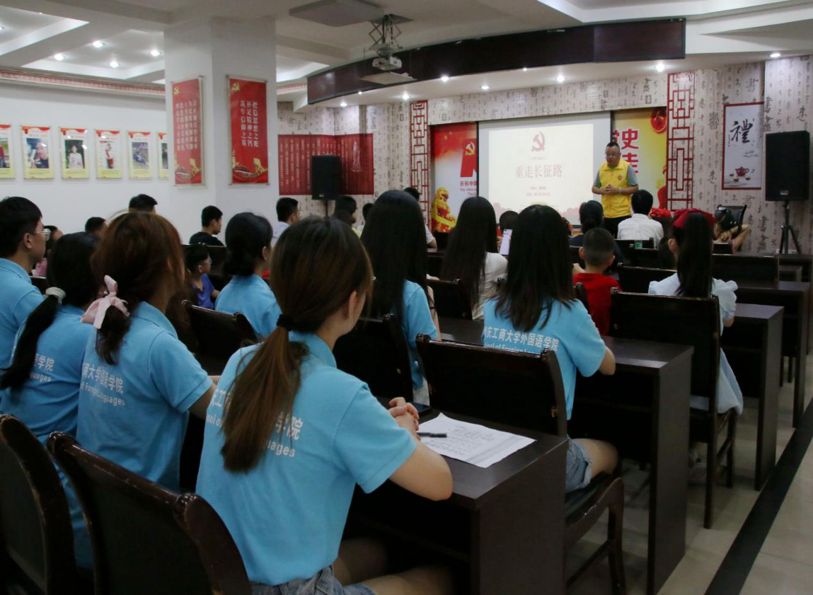 为引导广大社区居民朋友们学党史、知党事、感党恩、听党话、跟党走,7月15日上午,重庆市渝中区社区居民和万象城娱乐awc线路外国语学院2021暑期“三下乡”社会实践团一起上了一堂关于“红军长征”的特色党课,重庆市团校校长涂凯一行人莅临现场听取党课。重庆市渝中区老街公益文化发展中心成员童思斯从走长征路的前提、红军为什么能够获得长征的胜利以及红军怎样在长征途中获得老百姓的支持这三方面为同学们带来一堂别开生面的特色党课。同学们认真听讲,收获颇丰。