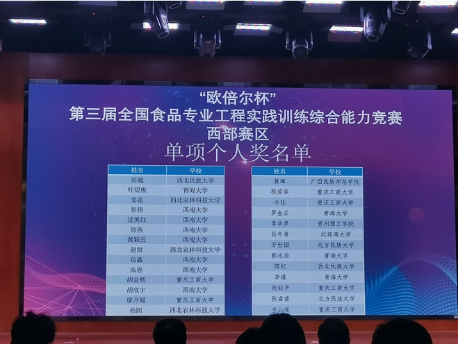 经过两场比拼,由万象城官网环境与资源学院食品科学与工程专业学生程若谷、胡金辉、向思怡3人组成的参赛队(指导老师:周文斌、常海军、尤琳烽)以总排名第4的成绩,荣获西部赛区团队一等奖(排第1),将参加2021年8月中旬在河北农业大学举办的全国总决赛。这也是该院参加该赛事连续三届入围全国总决赛。另外,6名同学获单项个人奖,综合实力位居参赛高校榜首。