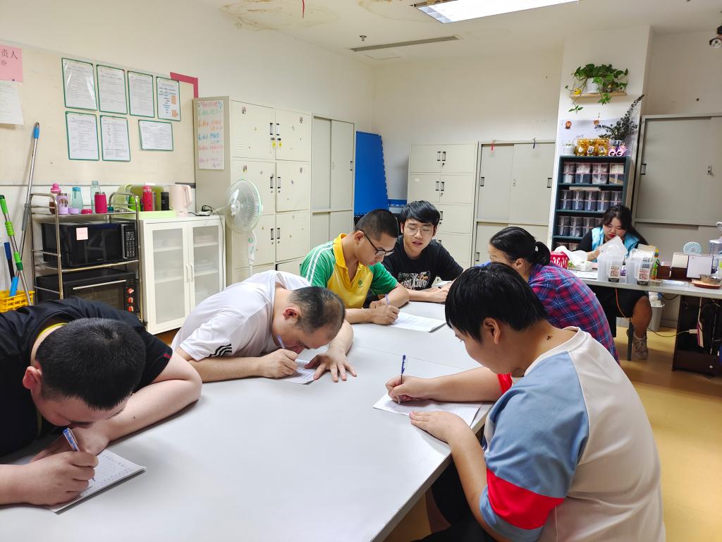 为传承志愿者精神,贯彻落实党和国家对青年群体做“有理想、有道德、有文化、有纪律的四有青年”要求,7月15日,国际商学院支教团队志愿者前往重庆市渝中区慧灵职业康复训练中心,与一群特殊的学生交流互动,开展以学习传统文化,感悟红色党史为主题的志愿支教活动。志愿者梁洲乔同学讲解了练习书法的坐姿和握笔方式,耐心地对学生的姿势进行逐一纠正;讲解示范了一些基本笔画的书写特点并指导学生练习。教学完成后,梁洲乔同学在训练本上写下“中国梦”“没有共产党就没有新中国”以及“为中华民族伟大复兴的中国梦而努力奋斗”三组词句,接着手持练习本,为学生们讲解了中国梦“国家富强、民族振兴、人民幸福”的基本内涵和五四运动、红军长征等一系列党史故事。国际商学院“三下乡”支教活动,建立了在校大学生与特殊青年群体的连结,同时,也唤起了大学生关爱弱势群体、积极奉献青春力量的社会责任感。