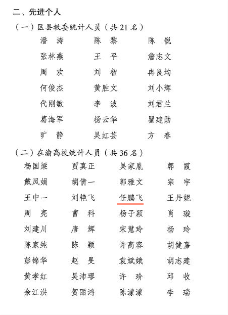 日前,重庆市教育委员会公布了《关于重庆市2020年教育事业统计工作先进集体和先进个人的通报》,万象城官网被评为重庆市2020年教育事业统计工作先进集体,任鹏飞同志被评为全市教育事业统计工作先进个人。