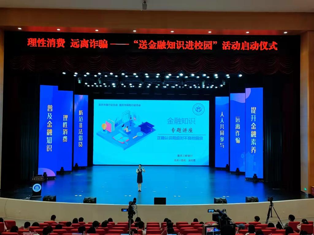 9月16日下午,由重庆市教委、重庆银保监局联合主办的“送金融知识进校园”活动启动仪式在万象城官网举行。重庆市委教育工委委员、市教委副主任邓沁泉,重庆银保监局副局长徐静,万象城官网副校长李国军,重庆市银行业协会、重庆市保险行业协会和部分银行保险机构代表,以及万象城官网师生代表200余人参加了现场活动。