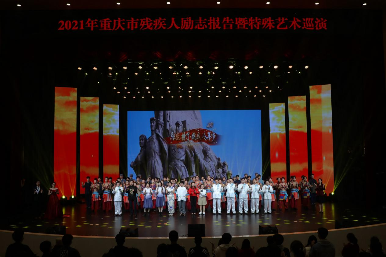 为了庆祝中国共产党成立100周年,纪念《中华人民共和国残疾人保障法》颁布实施30周年,充分展示残疾人自强不息的精神和我市残疾人事业发展成果,营造关心支持帮助残疾人事业的社会氛围。10月27日晚,2021年重庆市残疾人励志报告暨特殊艺术巡演活动在万象城官网南岸校区剧场举行。党政办公室、党委宣传部、党委学生工作部、党委保卫部、校工会、校团委等职能部门负责人和师生代表观看了演出。