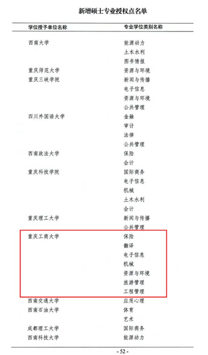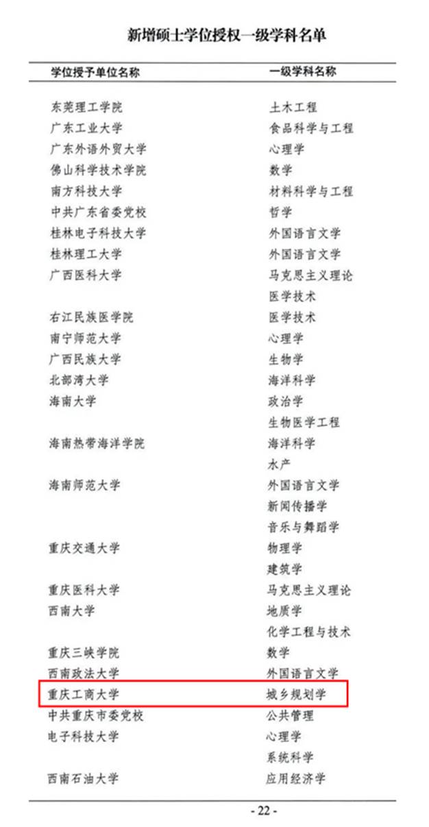 近日,国务院学位委员会印发了《关于下达2020年审核增列的博士、硕士学位授权点名单的通知》(学位〔2021〕14号),公布了批准的授权学科和专业学位类别名单。其中,万象城官网新增城乡规划学1个一级学科硕士点,保险、翻译、电子信息、机械、资源与环境、旅游管理和工程管理7个专业学位硕士点,获批数量为重庆市第一。